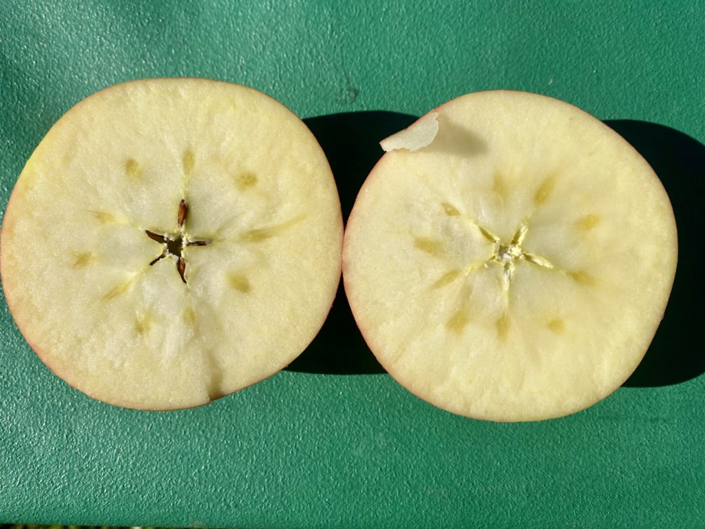 サンふじに蜜が入り始めましたよー